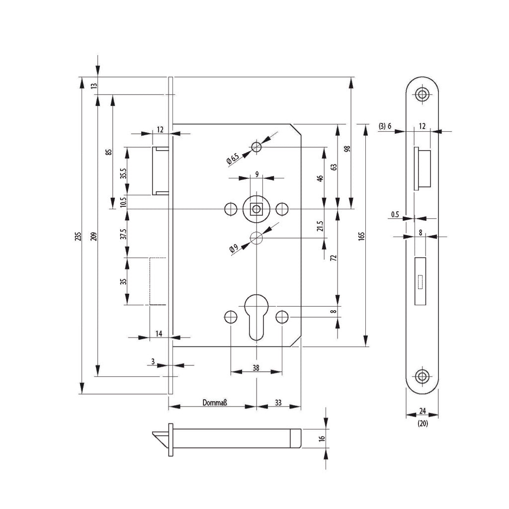 Entfernung: 72 mm. Kasten: 165 x 98 x 16 mm
