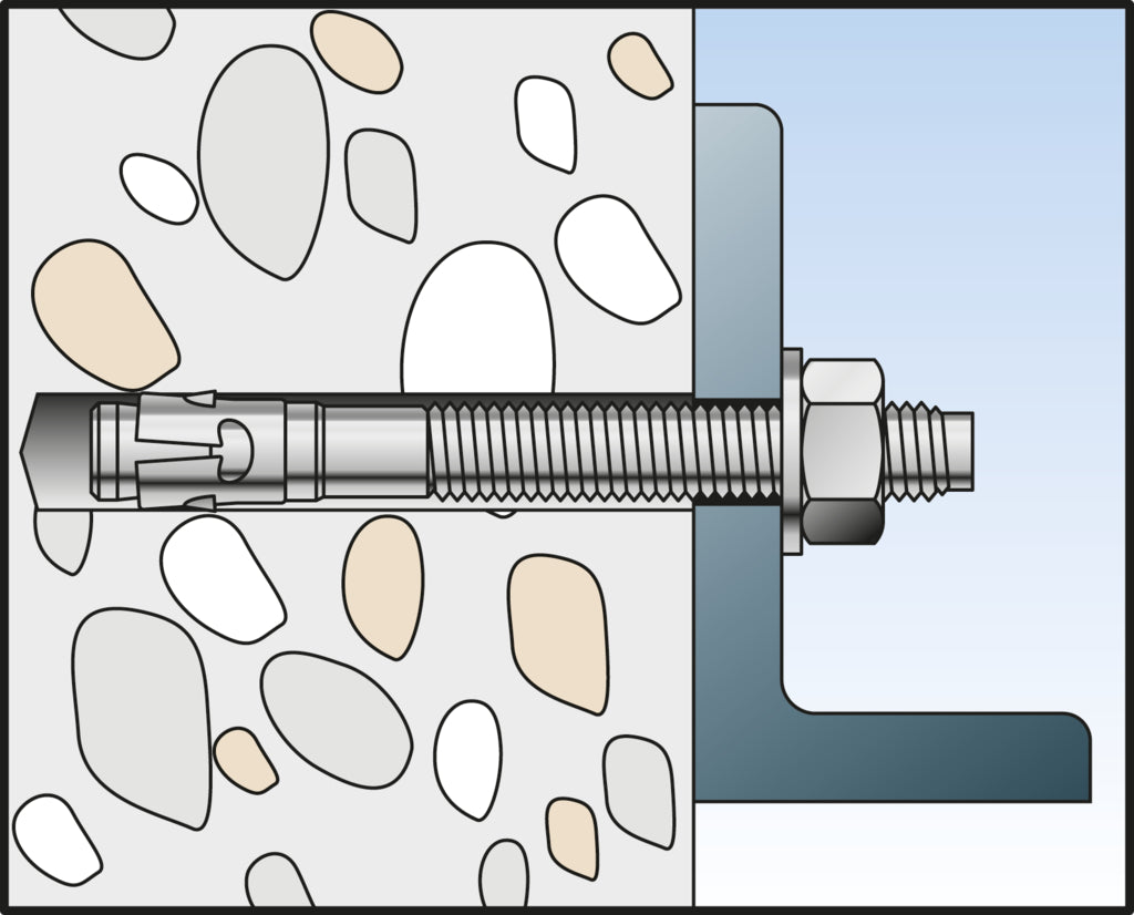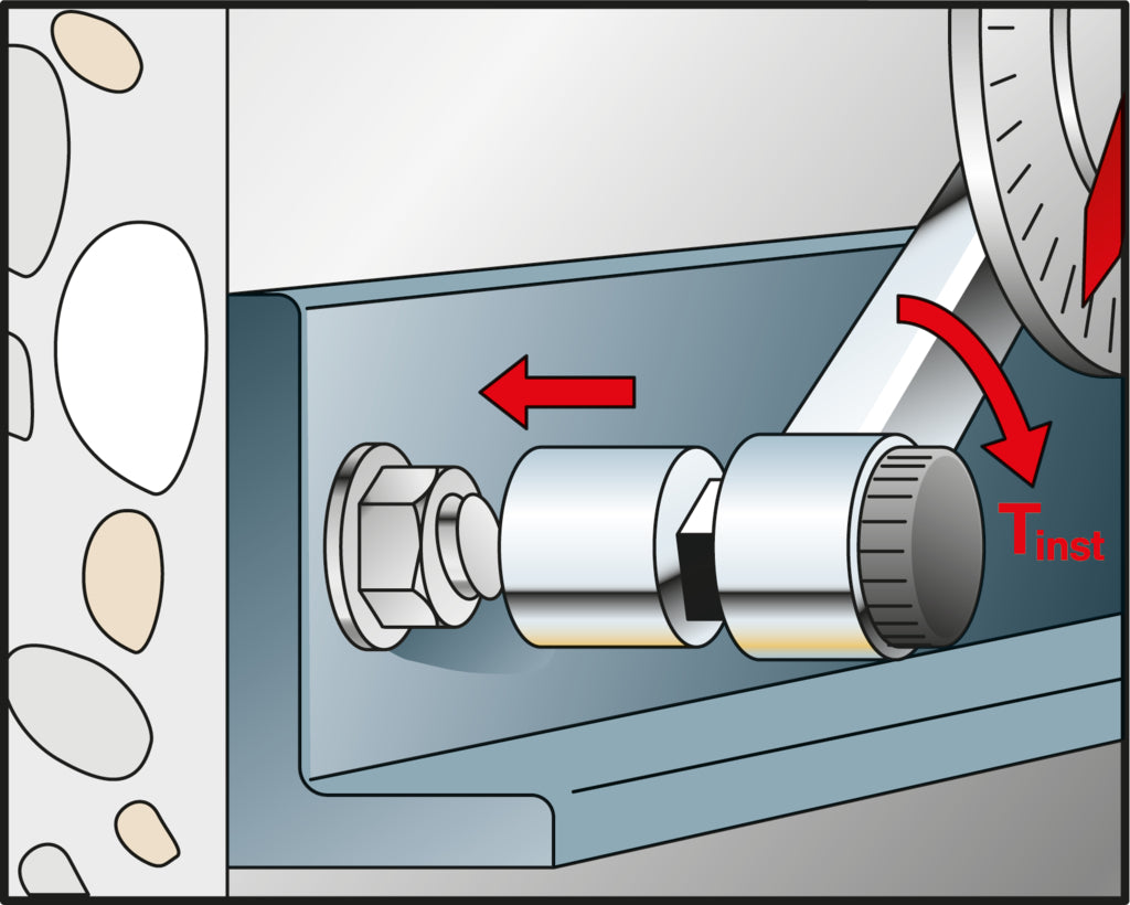 - beim Aufbringen des Drehmoments wird der Konusbolzen in den Spreizclip gezogen und verspannt diesen gegen die Bohrlochwand