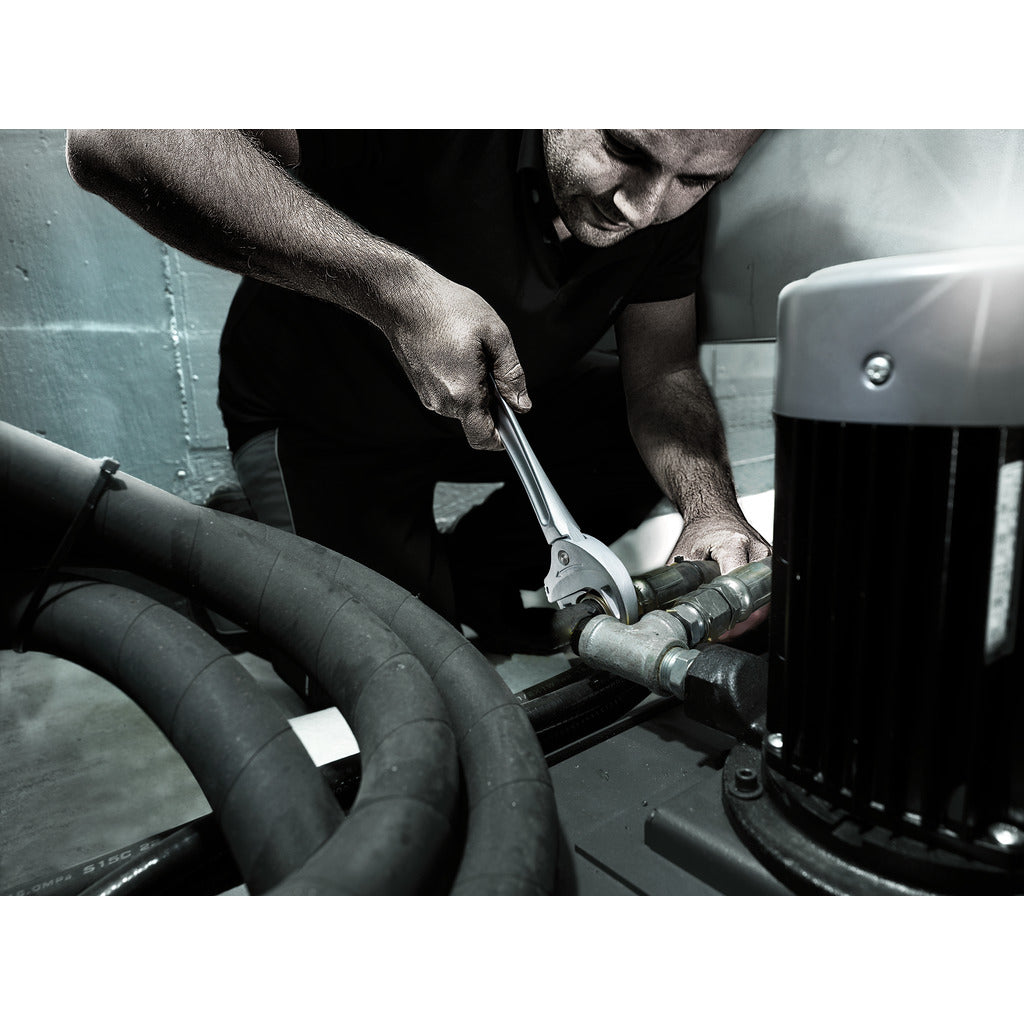 - schnelles und durchgängiges Verschrauben ohne Absetzen des Schlüssels durch mechanische Ratschenfunktion