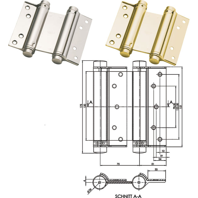 Hinweis: Beim Anbringen der Bänder muss darauf geachtet werden, dass die Gewerbe lotrecht übereinander stehen. Die Feder des oberen Bandes muss stärker gespannt werden, weil dieses Band eine größere Kraft ausüben muss. Verwenden Sie bei Tür-Zwischenmaßen, die in Höhe und Breite von den oben angeführten Maßen abweichen, die nächst größere Nummer. Besonders starke Türen müssen immer mit dem für diese Stärke vorgeschriebenen Band versehen werden.
