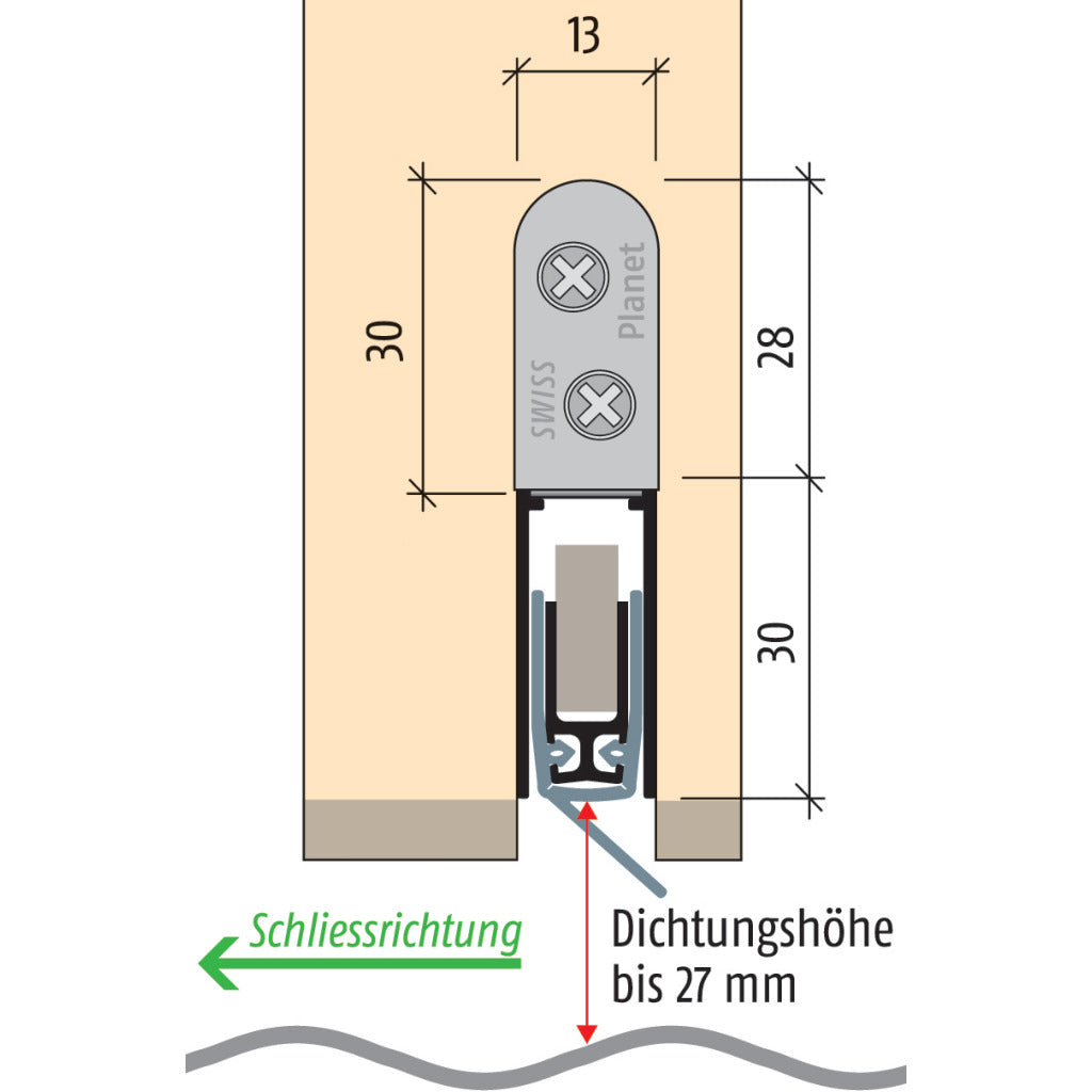 Einbaumaß: Breite 13 mm, Höhe 30 mm, Dichtungshöhe bis 27 mm